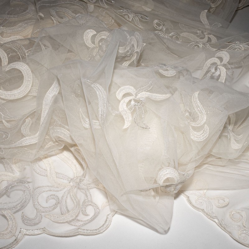 Pizzo su base tulle con disegni ricamati
