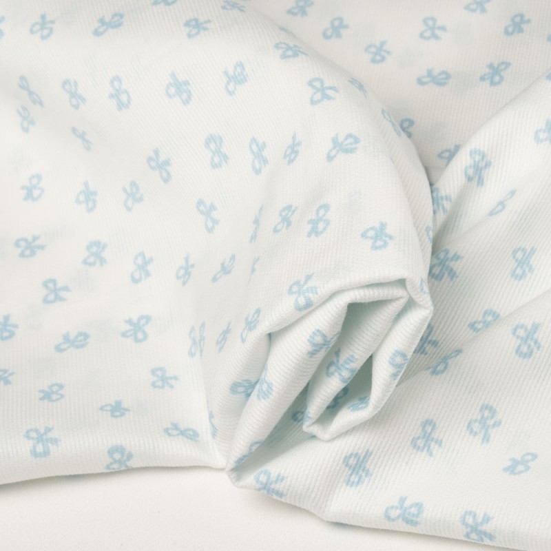 SCAMPOLO CM 90X150 PIQUET STAMPATO BIANCO FIOCCO CELESTE